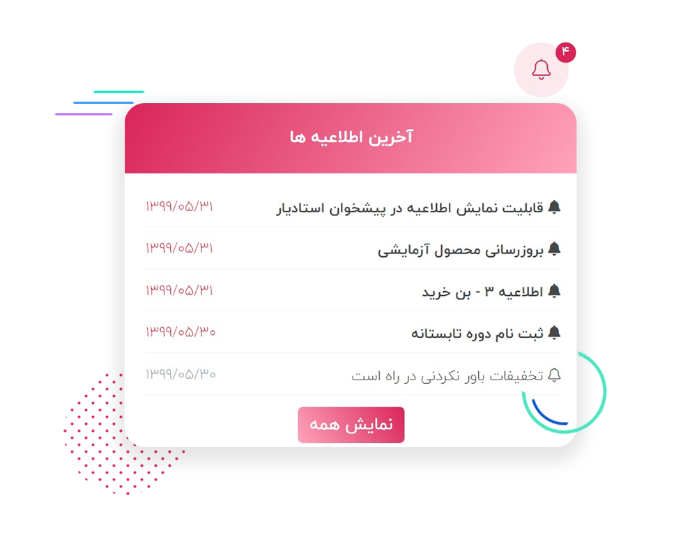 - امکان طراحی محتوای اطلاعیه با المنتور