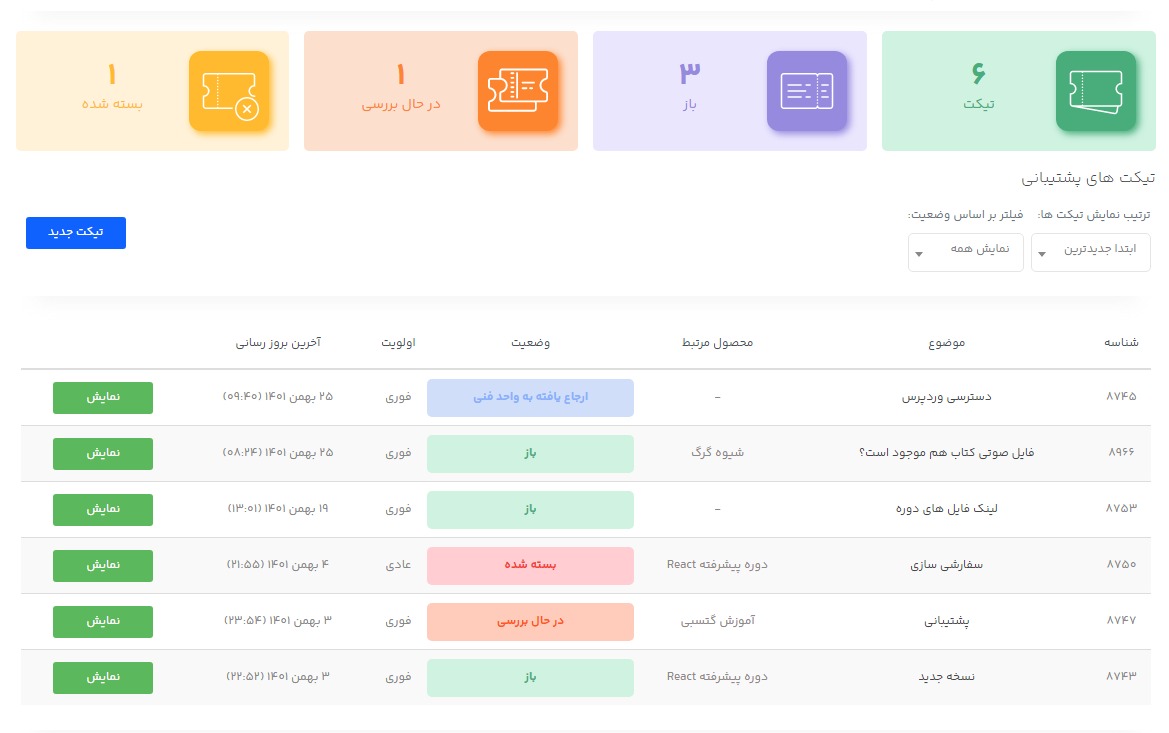 - قابلیت تعیین پشتیبان برای پاسخگویی تیکت ها