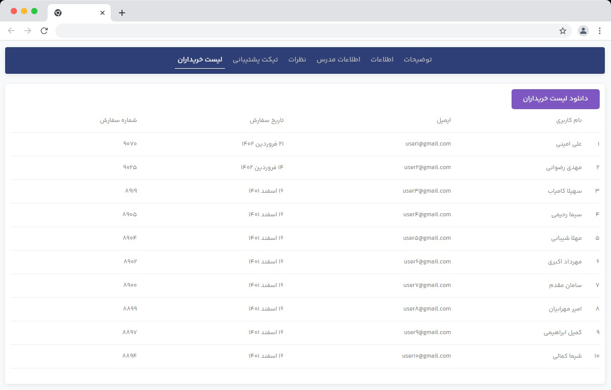 - امکان دریافت خروجی اکسل از لیست خریداران